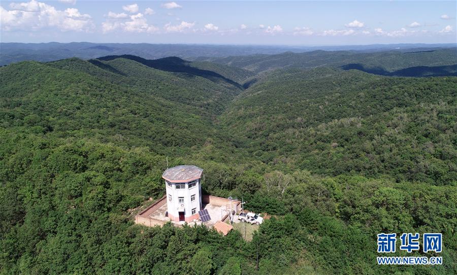 这是杨永岗工作生活的地方——子午岭国家级自然保护区内的八面窑瞭望台(8月23日无人机拍摄)。