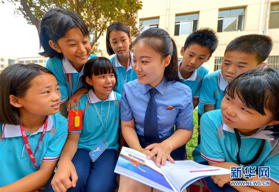 9月1日,邯郸市魏县人民检察院的青年志愿者在魏县一中向学生讲普法小故事。