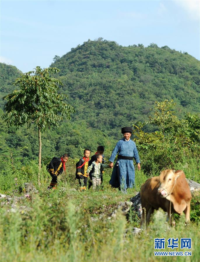 9月5日,杨朝俊护送学生回家。 杨朝俊在贵州毕节市花溪彝族苗族乡教书34个年头,换了5所小学。花溪彝族苗族乡海拔高,交通闭塞,很多外地老师来后总也留不住,只要哪所学校缺老师,杨朝俊就补上。2013年,丰坪小学的老教师到期退休,学校陷入无老师接班的困境。当地教育管理部门准备将学校并入3公里外的中心完小,但这样一来,村里的学生每天要多走一个多小时山路去上学。杨朝俊知道后,主动申请调入丰坪小学,解决了学校老师“断代”和村里孩子上学远的难题。 从2013年至2017年,杨朝俊孤身一人守着丰坪小学两个年级的30余名学生,从保健卫生、课间活动,到写字念书,吃饭和上下学,杨老师无微不至地照顾和教导学生,他默默坚守的事迹吸引了一名支教老师前来“搭班”。今年新学期开学时,当地教育部门又选派了一名年轻的特岗教师来到学校,与他分担幼儿班和一二年级的教学工作。 现在杨朝俊最担心的是退休后能否有老师来“接班”,他期盼能有更多人来到这里,让偏远乡村小学的教学“薪火”继续传递下去。 新华社发(杨文斌摄)