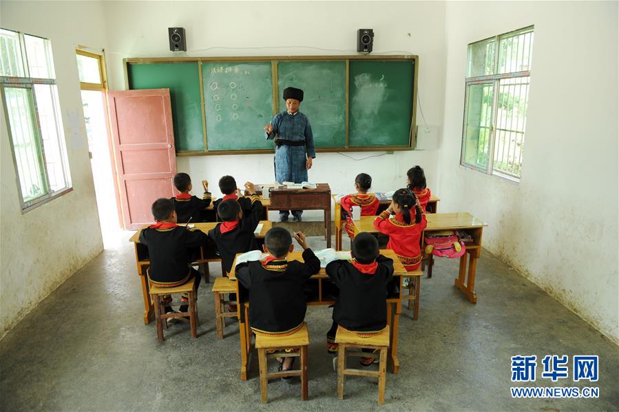 9月5日,杨朝俊给学生上语文课。 杨朝俊在贵州毕节市花溪彝族苗族乡教书34个年头,换了5所小学。花溪彝族苗族乡海拔高,交通闭塞,很多外地老师来后总也留不住,只要哪所学校缺老师,杨朝俊就补上。2013年,丰坪小学的老教师到期退休,学校陷入无老师接班的困境。当地教育管理部门准备将学校并入3公里外的中心完小,但这样一来,村里的学生每天要多走一个多小时山路去上学。杨朝俊知道后,主动申请调入丰坪小学,解决了学校老师“断代”和村里孩子上学远的难题。 从2013年至2017年,杨朝俊孤身一人守着丰坪小学两个年级的30余名学生,从保健卫生、课间活动,到写字念书,吃饭和上下学,杨老师无微不至地照顾和教导学生,他默默坚守的事迹吸引了一名支教老师前来“搭班”。今年新学期开学时,当地教育部门又选派了一名年轻的特岗教师来到学校,与他分担幼儿班和一二年级的教学工作。 现在杨朝俊最担心的是退休后能否有老师来“接班”,他期盼能有更多人来到这里,让偏远乡村小学的教学“薪火”继续传递下去。 新华社发(杨文斌摄)