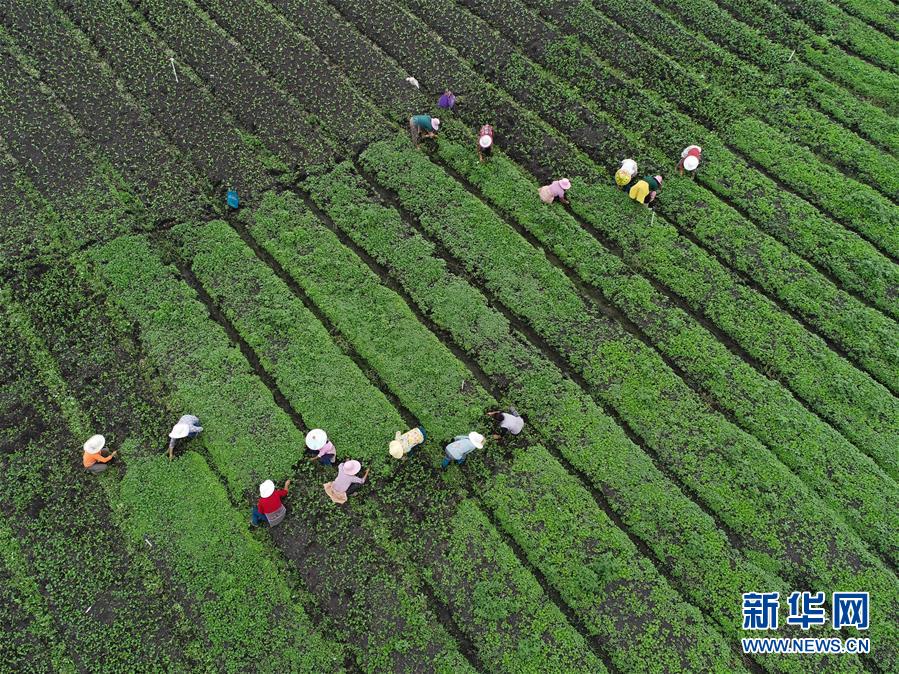 9月6日,农民在贵州省黔西县林泉镇海子村蔬菜种植基地里忙碌(无人机拍摄)。 新华社发(杨武魁 摄)