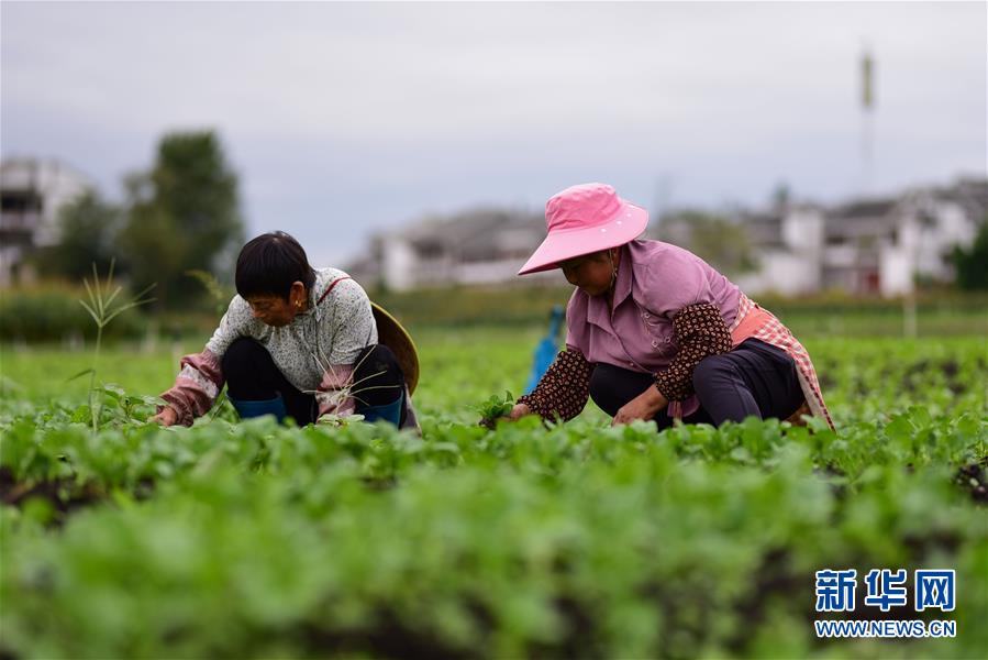 9月6日,农民在贵州省黔西县林泉镇海子村蔬菜种植基地里管护菜苗。 新华社发(杨武魁 摄)