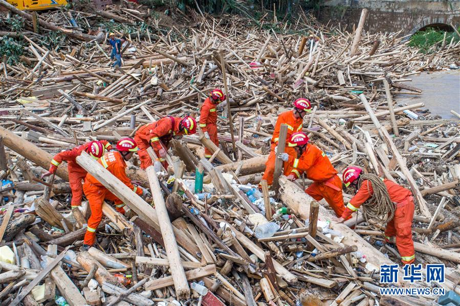 救援人员在麻栗坡县猛硐瑶族乡坝子桥区域搜寻失踪人员(9月4日无人机拍摄)。