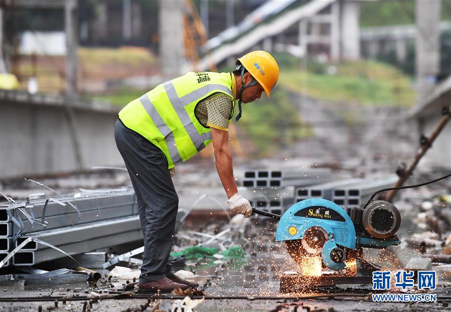 9月7日,工作人员在重庆轨道交通九号线一期工程华村站施工现场作业。目前,由中国建筑股份有限公司承建的重庆轨道交通九号线一期工程正在加紧施工。该线路起于重庆沙坪坝区高滩岩,终点在渝北区回兴,全长约32.3公里,预计将于2020年建成通车。新华社记者 王全超 摄