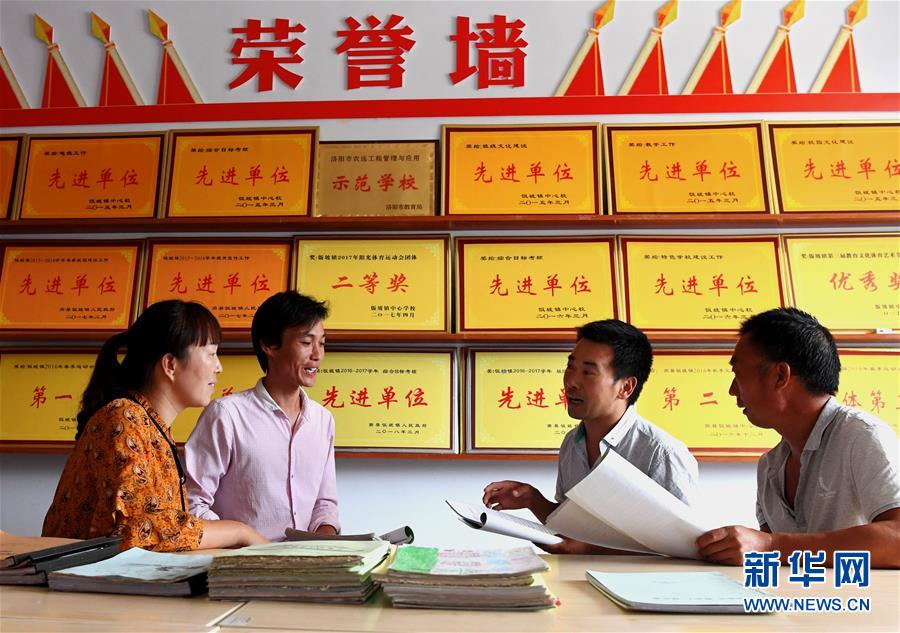 9月7日,杜明伟(右二)、白会娟(左一)、杜同新(右一)、白海伟(左二)在会议室里研讨教案。 饭坡镇青山村小学位于河南省嵩县的偏远山区,学校现有110名学生,6名在编教师,其中4名教师都出自一家。今年35岁的杜明伟曾是一名镇中学的教师,2009年,杜明伟在青山村小学任教了29年的父亲杜同升因病不能继续教学,眼看着村小学面临停课,杜明伟毅然说服了妻子白会娟,双双回到青山村小学接过父亲手中的教鞭,一干就是近10年。 青山村小学远离镇区,交通不便,近10年间,杜明伟夫妇眼看着年轻教师来了又走。为了补充师资力量,杜明伟在镇上小学任教的叔叔杜同新申请调到青山村小学教学,白会娟也说服了全县招教考试总分第一名的弟弟白海伟来到青山村小学任教,一家两代五人,传承坚守在青山村小学,守护着山村孩子的求学梦想。 近几年,通过社会各界的帮助,学校的硬件条件得到了明显提升,还新建了书屋,白会娟成为图书管理员。老师们坚持带着学生阅读,教学生写读书日记,让学生养成了良好的阅读习惯。 如今村子里考上大学的学生数量增多,杜明伟心里有说不出的高兴:“小学是人生的奠基阶段,要让孩子们把基础知识学扎实,培养他们良好的阅读习惯,树立正确的价值观,只要还有学生,我们就要一直坚持下去。” 新华社记者李安摄