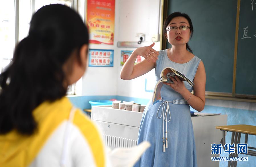 今年31岁的黎阳是安徽省肥西县高店初级中学一名语文老师。从阜阳师范学院汉语言文学专业毕业后,黎阳怀揣着扎根基层的理想,2012年报考了离家很远的乡村学校的教学岗位。因学校偏僻,黎阳选择住在学校宿舍,每天备课、上课、批改作业、和孩子们谈心是她主要的生活内容。 黎阳是独生女,父母在安徽淮南生活。每逢节假日,黎阳都要回淮南看望家人。乡村交通不便,黎阳每次回家都要多次转车,有时候错过了路过校门口的末班车,则要步行10多公里去转车。黎阳说,现在乡村学校年轻教师比例小,不少人要么辞职要么考到城里的学校去了,但自己会坚持下去,为了这群孩子们,努力当好一名“乡村教师”。 新华社记者刘军喜摄