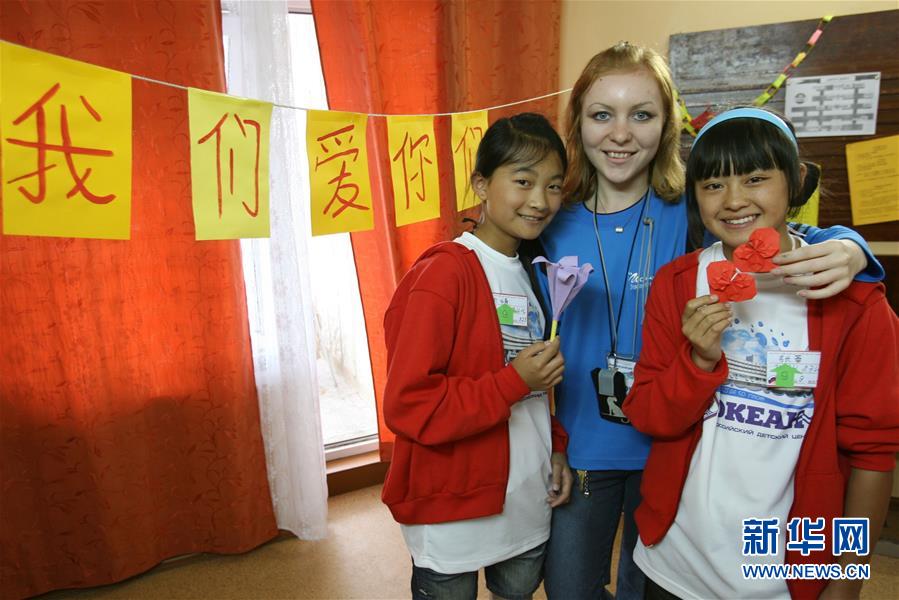 2008年7月21日,在位于符拉迪沃斯托克市郊区的“海洋”全俄儿童中心,两个中国小姑娘和她们的折纸课老师合影留念。 坐落在符拉迪沃斯托克市郊区的“海洋”全俄儿童中心,宛若一艘洁白的帆船,面朝大海,拥抱来自世界各地的孩子。
