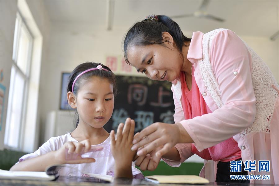 9月9日,崔芳英老师和学生朱旭磊在课上进行交流。 新华社记者 朱旭东 摄