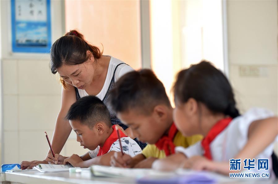 9月3日,在长乐区长屿小学,林珠金在为学生们上课。 新华社记者 宋为伟摄