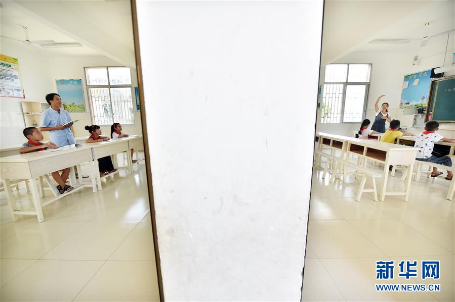 9月3日,在长乐区长屿小学,王开佺(左)、林珠金分别为二年级和三年级的学生上课。 新华社记者 宋为伟摄