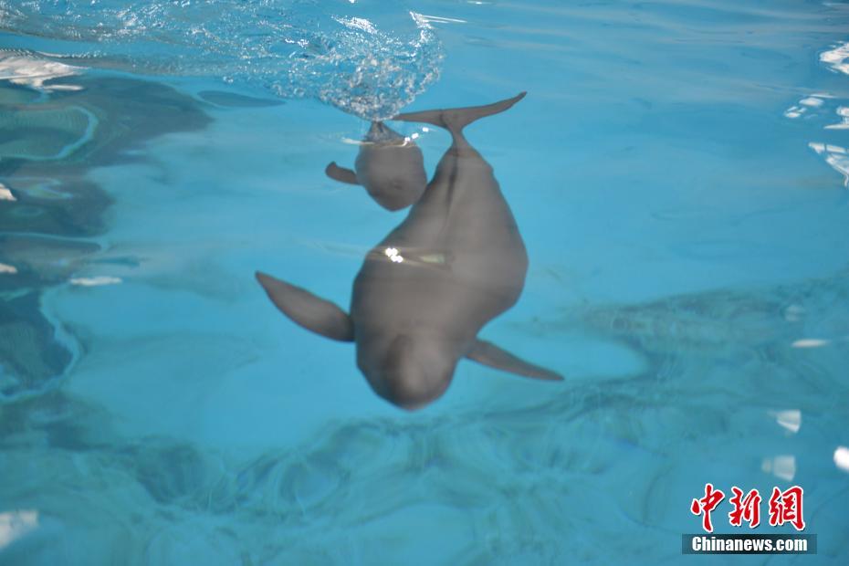9月11日,中国科学院发布消息,该院位于湖北武汉的水生生物研究所(中科院水生所)白鱀豚馆一头雄性小江豚出生已满百日,这也是该所自2005年全球首例人工饲养长江江豚成功繁殖以来成活的第二头小江豚。图为小江豚和小江豚母亲“福七”。 中新社发 中科院水生所供图