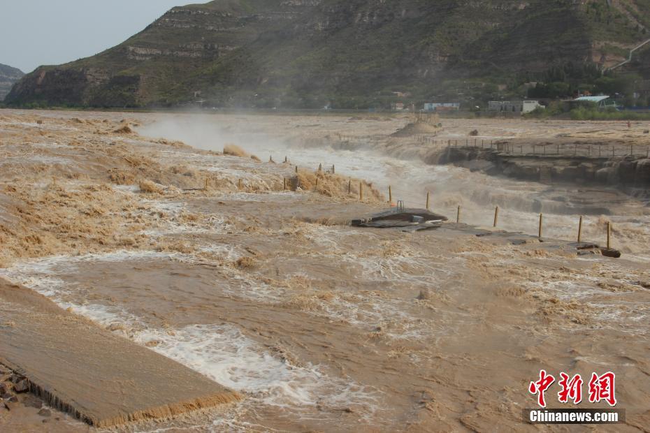 黄河壶口瀑布现“水岸齐平”景色 瀑布群绵延数百米