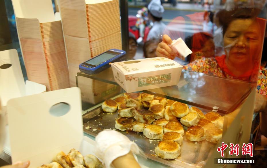 上海民众排队购买鲜肉月饼。 汤彦俊 摄