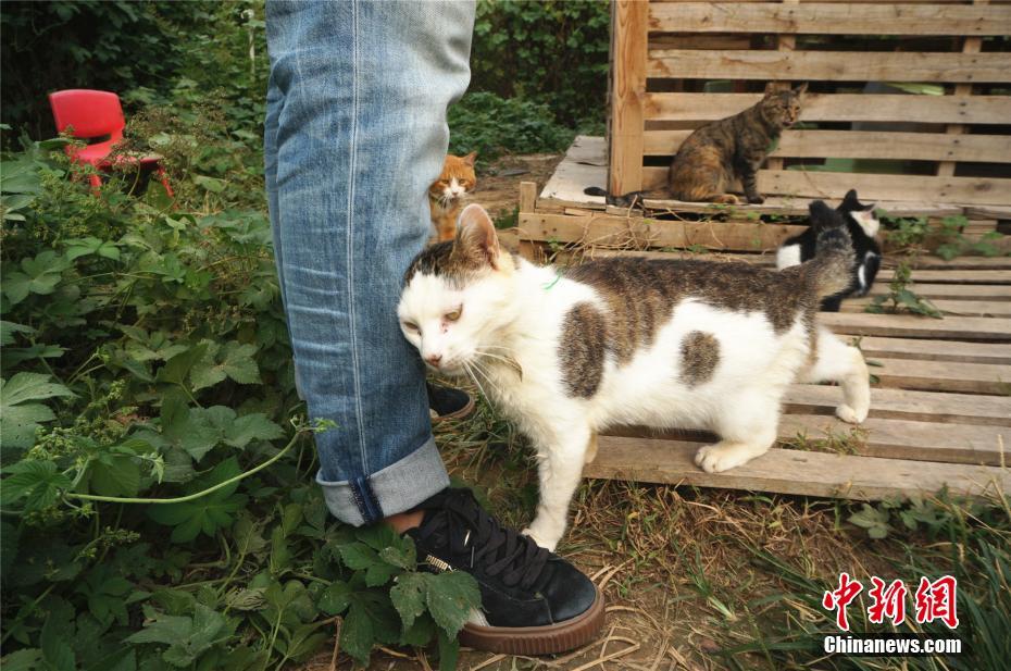 营地里的每一只猫都可以被爱心人士免费领养,当有人来的时候,猫咪十分愿意与人亲近。 韩章云 摄