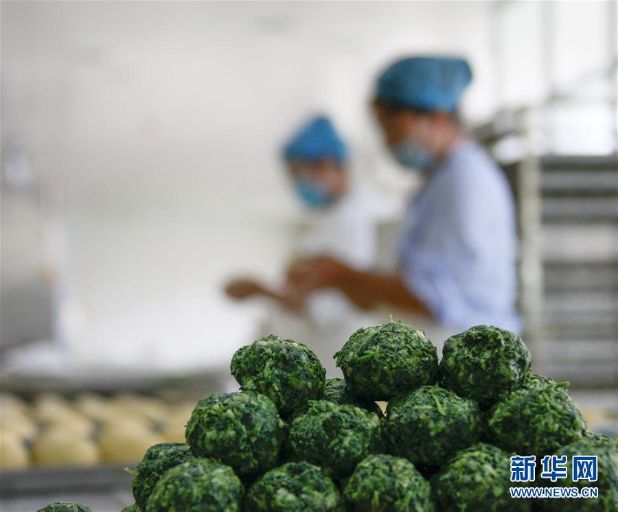 9月15日,河北玉田县鸦鸿桥镇边家铺村农民在食品加工车间包野菜团子。