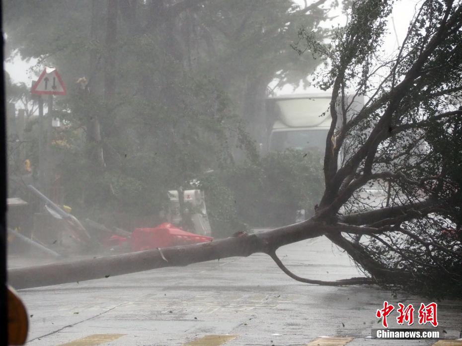 9月16日,香港受到强台风“山竹” 袭击,发出10号风球信号,海陆空几乎停顿,当局收到十几宗塌树报告,低洼地区更是水浸。图为被强风吹倒的大树。中新社记者 洪少葵 摄