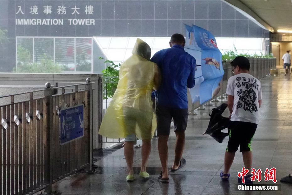 香港受到“山竹”袭击 市民出行雨伞吹变形