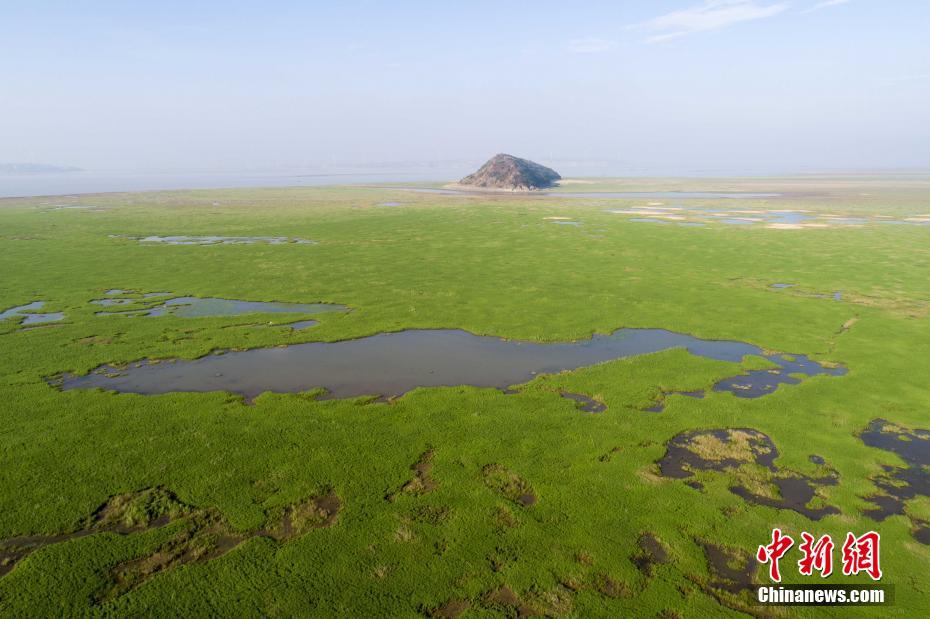 9月19日,航拍“中国最大淡水湖”鄱阳湖都昌水域,湖床变身茫茫草原。鄱阳湖标志性水文站星子站今年首次跌破12米,标志着鄱阳湖正式进入枯水期。据了解,鄱阳湖水位自今年2月起,较历史同期水位持续偏低。中新社发 傅建斌 摄
