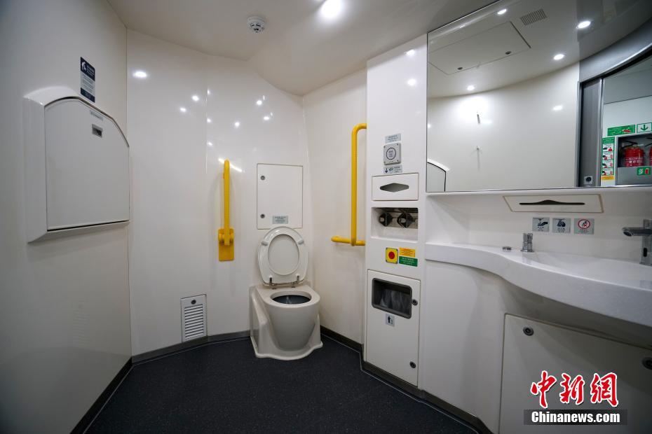 车厢内设有无障碍洗手间以便利残障人士,该洗手间大门以按扭方式开启,墙壁上还有母婴护理台。 中新社记者 张炜 摄