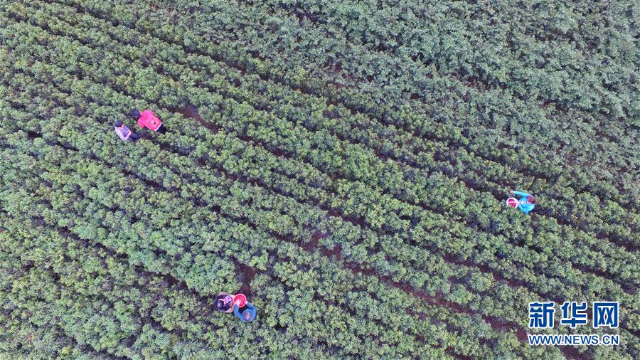 9月20日,河北省邯郸市临漳县张村集乡后安上村的椒农在采摘辣椒。