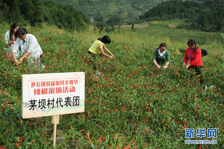 9月21日,贵州省桐梓县茅石镇农民在参加采摘辣椒比赛。 新华社发(杨文斌 摄)