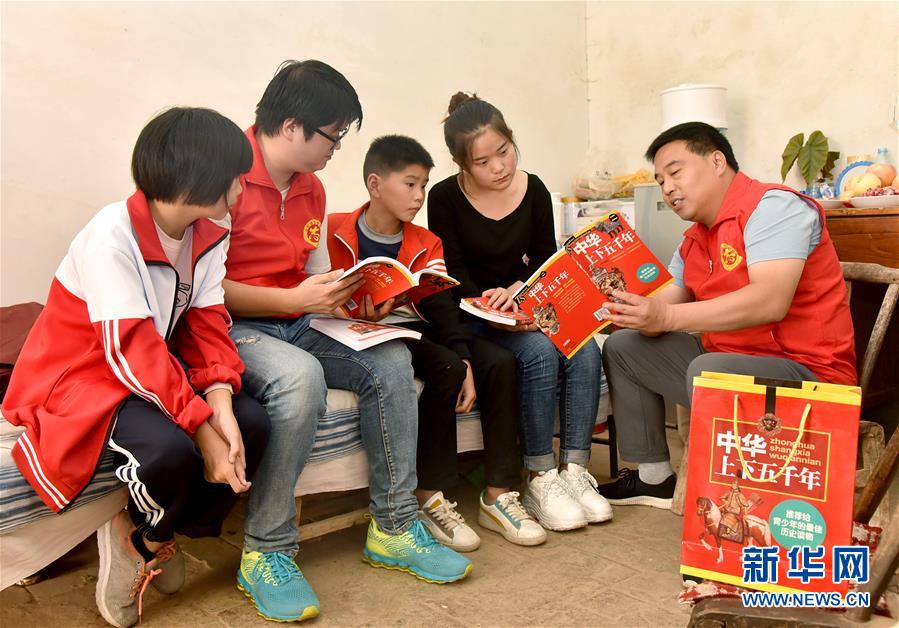 9月21日,在宜阳县高村镇王莽村,志愿者为孩子们送来书籍。