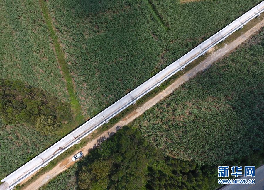 这是广西来宾市兴宾区良江镇境内正在施工建设的引水渡槽(9月21日无人机拍摄)。新华社记者陆波岸摄
