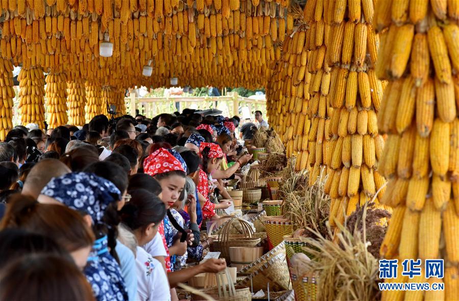 9月21日,在四川省三台县芦溪镇清河村举办的农民丰收节主题活动上,人们在参观展出的各种农产品。 当日,四川省三台县举行主题为“同唱丰收曲 共筑振兴梦”农民丰收节主题活动。活动包括农业丰收展示、长桌宴、对产业种植养殖大户进行表彰、非物质文化遗产展示、农耕文化展示等。 新华社发(刘华伟 摄)