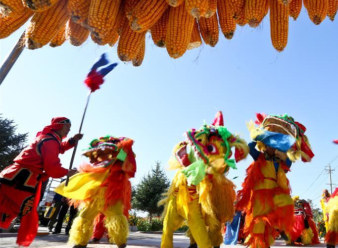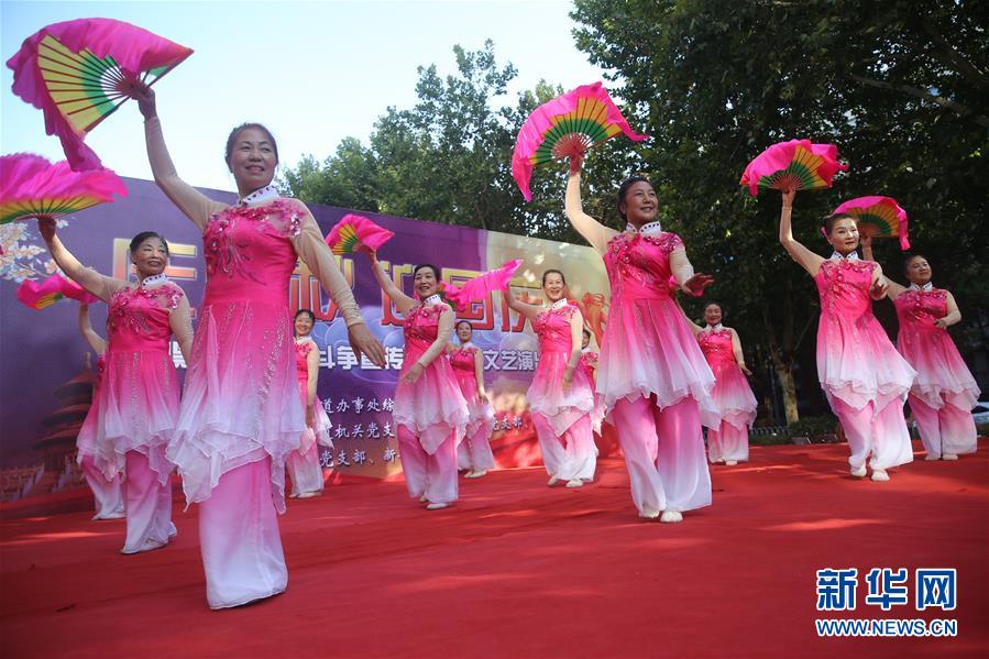 9月21日,市民在专场文艺演出中表演。 当日,湖北省襄阳市七里河街道办事处举办专场文艺演出,市民们载歌载舞迎接中秋、国庆双节的到来。 新华社发(王虎 摄)