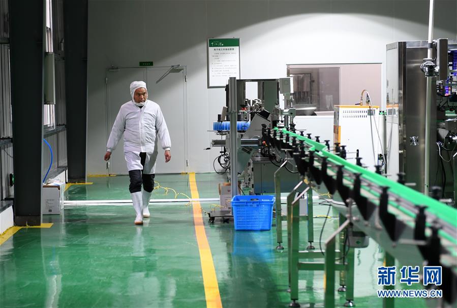 施六金在十八洞村新建的山泉水厂里工作(2月3日摄)。新华社记者 李尕 摄