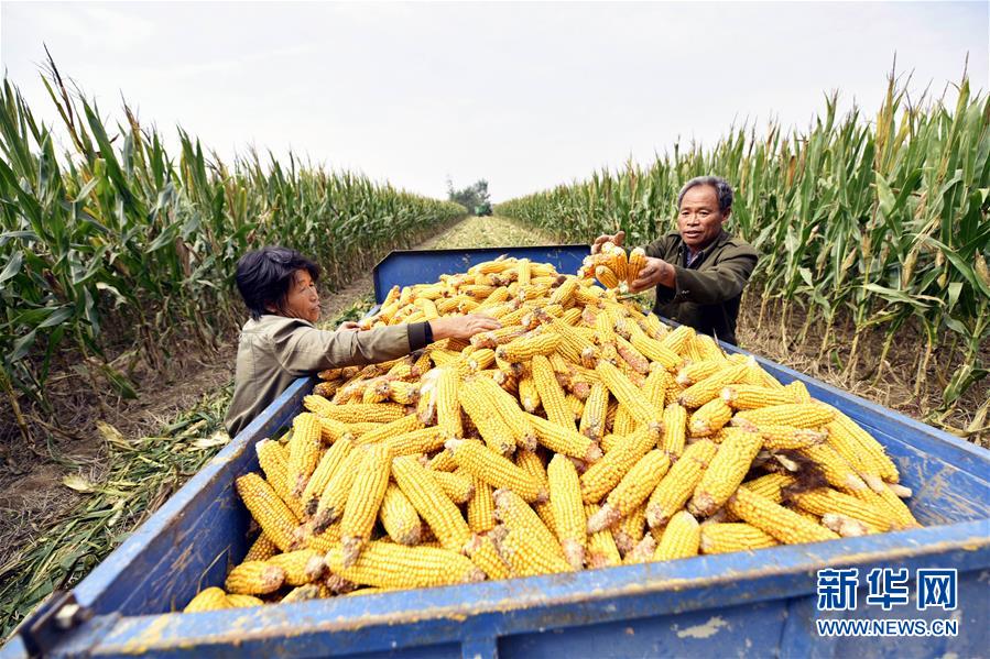 9月26日,山东省聊城市茌平县贾寨镇耿张村的农民在田间收获玉米。 新华社发(赵玉国 摄)