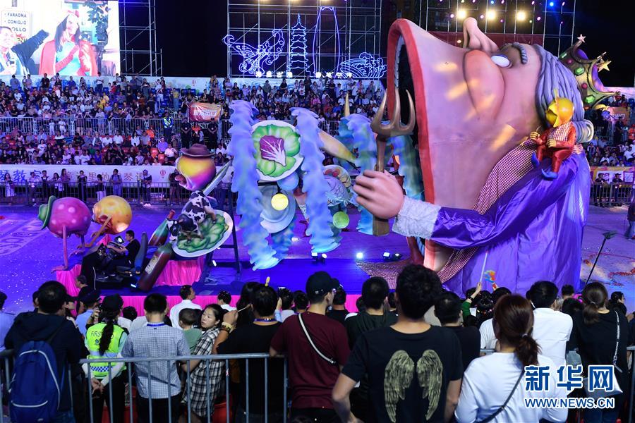 当日,为期6天的2018宁波·尼斯嘉年华活动在浙江省宁波市江北星湖路举行开幕式及首日夜场表演。 新华社记者黄宗治 摄