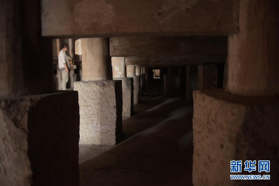 这是9月27日拍摄的吊脚粮仓底部石柱。新华社发(王俊 摄)