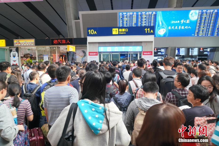 10月1日,旅客在北京南站检票口前等待检票。当天是国庆假期首日,北京南站迎来客流高峰。此前,据北京铁路局预计,国庆黄金周将发送旅客1168万人,同比增加19.9万人。其中10月1日为出行高峰日,预计当天发送旅客143万人,同比增加4.7万人。中新社记者 张兴龙 摄