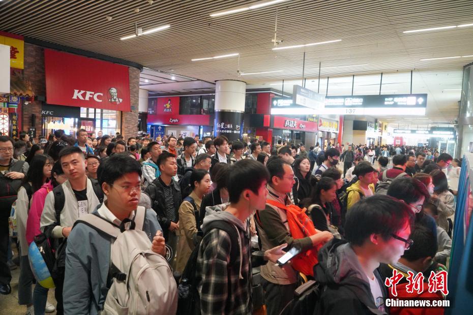 10月1日,旅客在北京南站内自动取票机前排队取票。当天是国庆假期首日,北京南站迎来客流高峰。此前,据北京铁路局预计,国庆黄金周将发送旅客1168万人,同比增加19.9万人。其中10月1日为出行高峰日,预计当天发送旅客143万人,同比增加4.7万人。中新社记者 张兴龙 摄