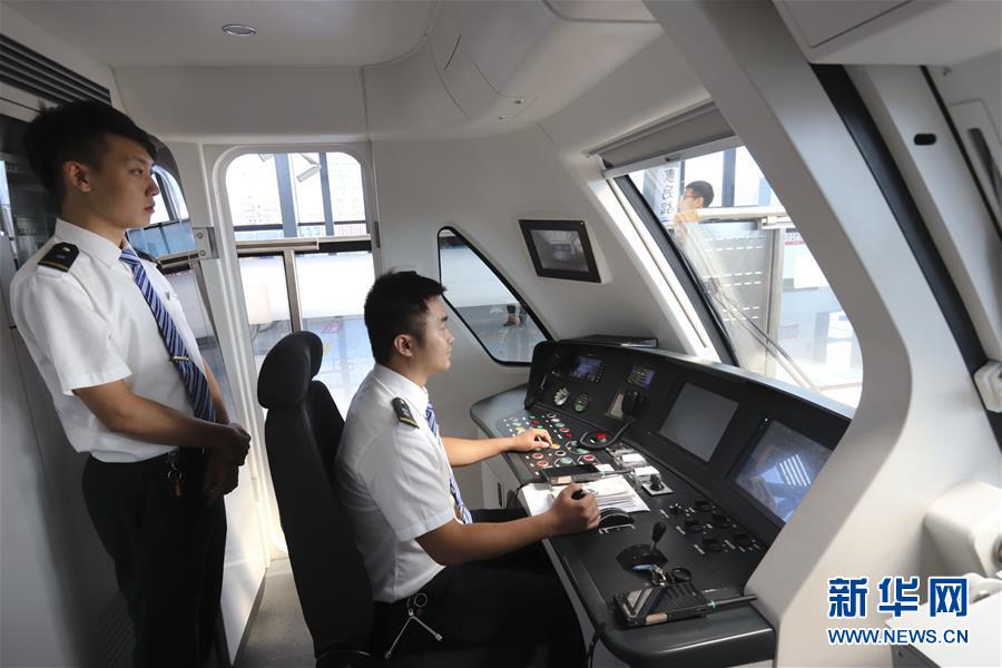 10月1日,在浙江温州轨道交通S1线惠民路站,驾驶员在驾驶室内操作。