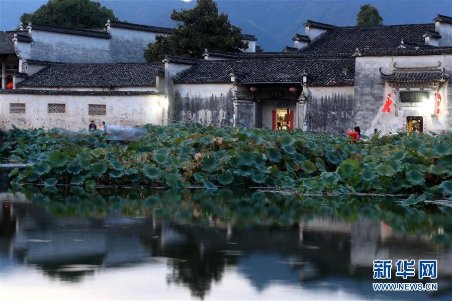 10月1日,人们在安徽黄山黟县宏村风景区游览。