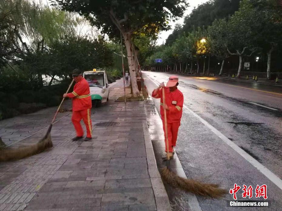 西湖景区迎来大客流的同时也增大了环卫工人的清扫工作压力,环卫工人们延长工作时间守护城市文明。杭州市城管委供图