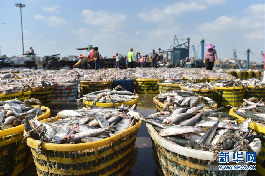 10月2日,渔民在福建省石狮市祥芝国家中心渔港清点渔获。 新华社记者 宋为伟 摄
