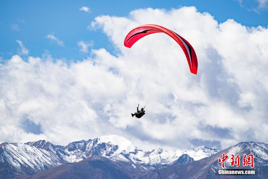 10月3日,西藏羊八井,一名运动员在滑翔伞比赛中。当日,2018第十六届中国西藏登山大会在中国登山协会西藏羊八井高山训练基地拉开帷幕。中新社记者 何蓬磊 摄