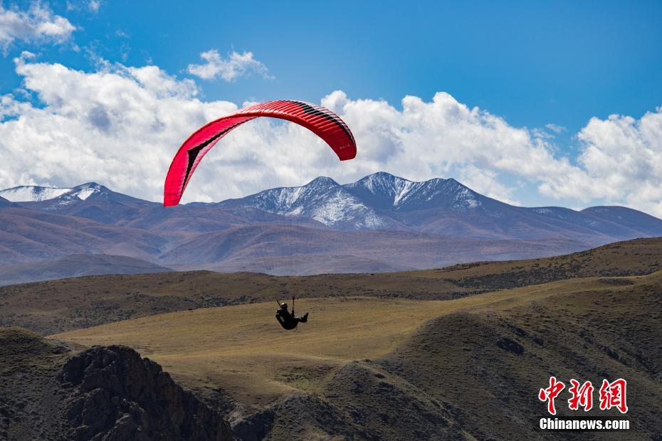 据悉,滑翔伞作为亚运会竞赛项目,目前已逐渐在雪域高原西藏开展起来。中新社记者 何蓬磊 摄