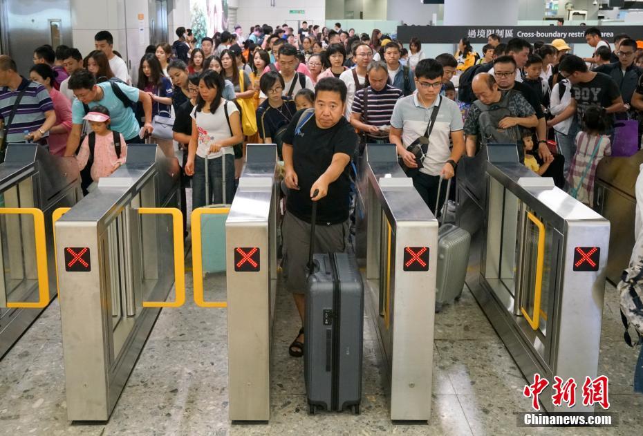 10月3日,高铁香港西九龙站迎来大批内地旅客,其中以深圳和广州等地出发的短途客为主。中新社记者 张炜 摄