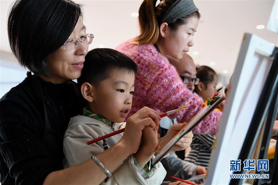 10月3日,在山西太原市图书馆,市民在上油画课。 新华社记者 杨晨光摄