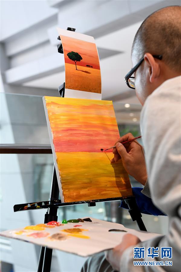 10月3日,在山西太原市图书馆,市民在上油画课。 新华社记者 杨晨光摄