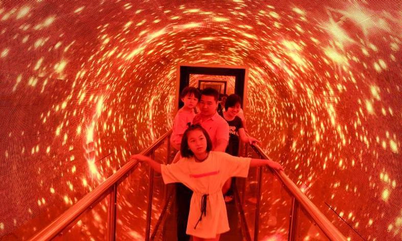 国庆假期,西藏拉萨市许多家长选择陪伴孩子到大型商场休闲娱乐。新华社记者 张汝锋 摄