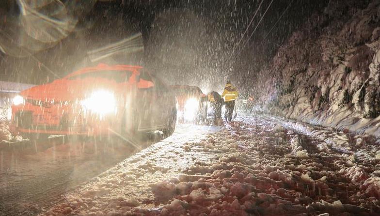 四川康定318国道积雪路段恢复单边通行 滞留车辆仍在疏散