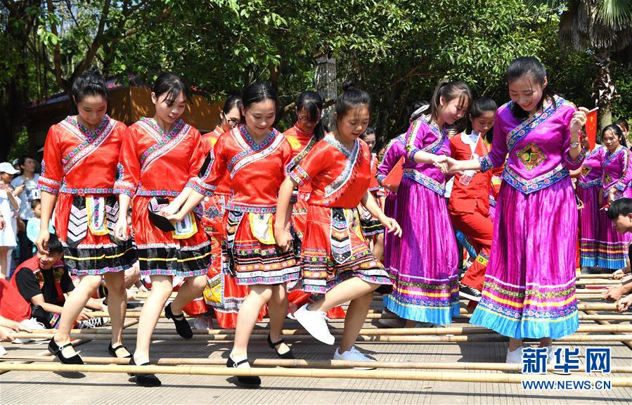 石羊塘社区居民在马草江生态公园跳竹竿舞(9月30日摄)。 新华社记者周华摄