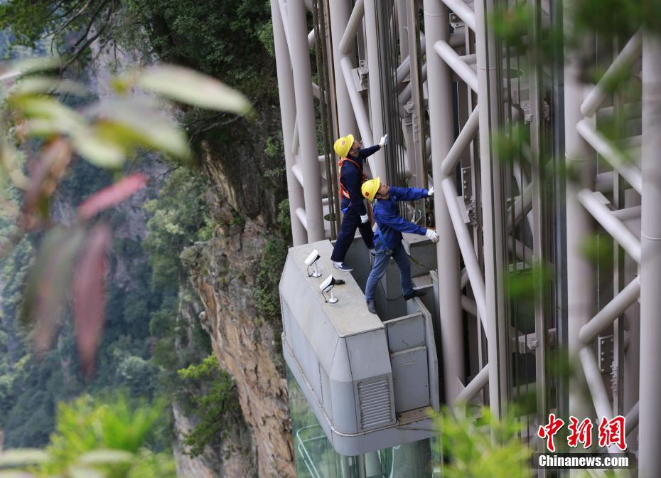 湖南张家界:悬崖电梯巡检工的假日坚守