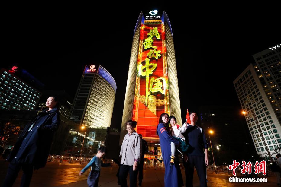10月3日,北京西城区金融街举办灯光秀,庆祝中华人民共和国成立69周年。中新社记者 杜洋 摄