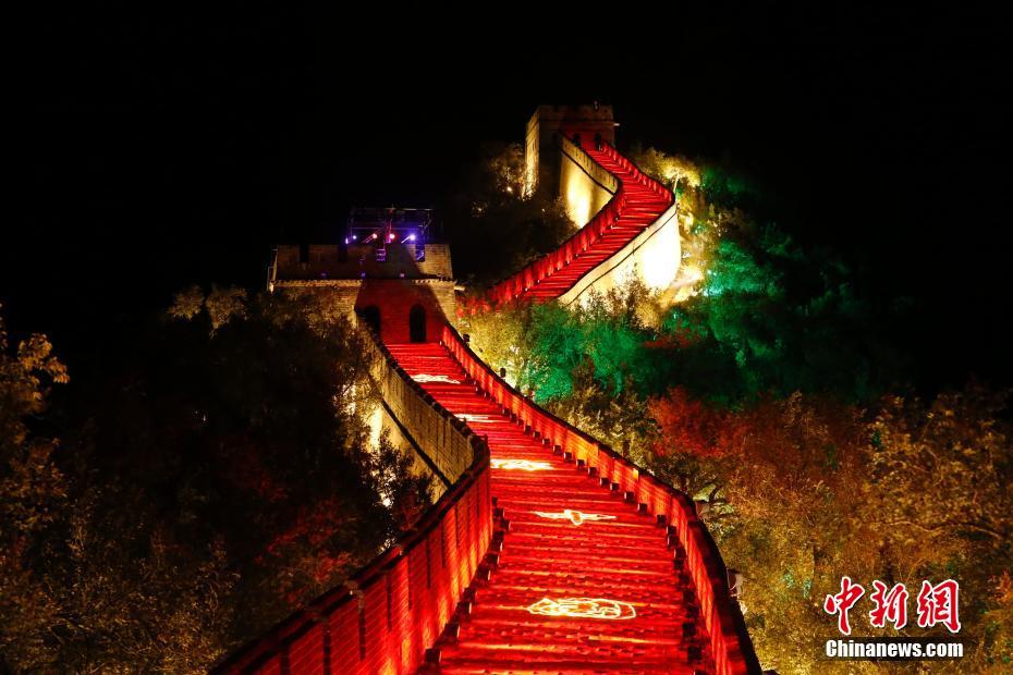9月30日晚,北京八达岭长城举办“我爱你中国”迎国庆灯光秀。中新社记者 韩海丹 摄